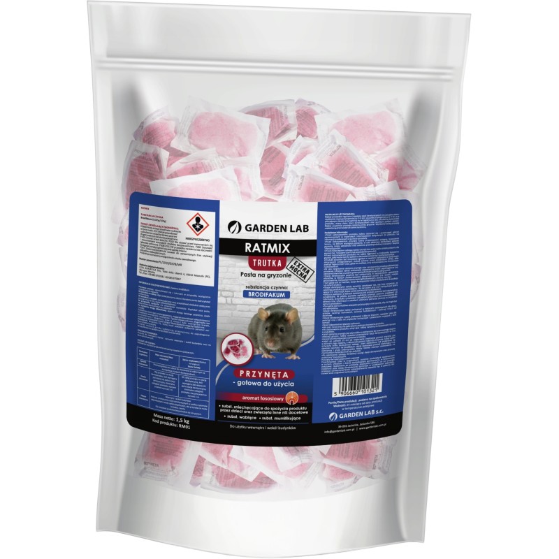 Ratmix to profesjonalny preparat gryzoniobójczy w formie miękkiej pasty, który łączy w sobie zabójczą skuteczność z wyjątkową atrakcyjnością dla szkodników. Dzięki zastosowaniu najsilniejszej substancji czynnej – Brodifakum – trutka radzi sobie nawet tam, gdzie inne środki zawiodły.