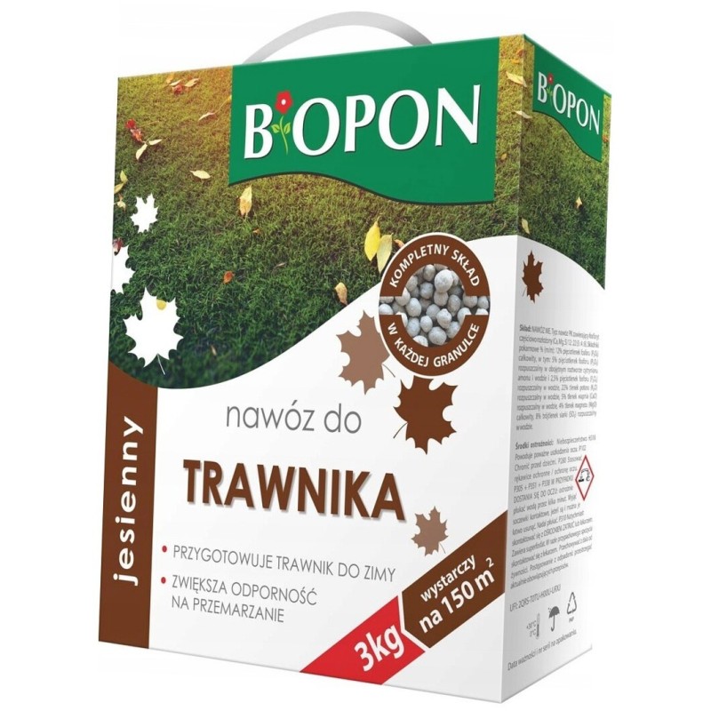 Wieloskładnikowygranulat o jednolitej konsystencji (kompletny skład w każdej granulce) do nawożenia doglebowego. Brak azotu hamuje przyrost trawnika, aby przy dłuższych okresach ciepła nie wymagał koszenia. Duża porcja potasu zwiększa odporność na wymarzanie. Nawóz długotrwale uzupełnia niedobory minerałów w glebie i tworzy zapasy składników odżywczych potrzebnych do rozpoczęcia wegetacji w następnym sezonie.