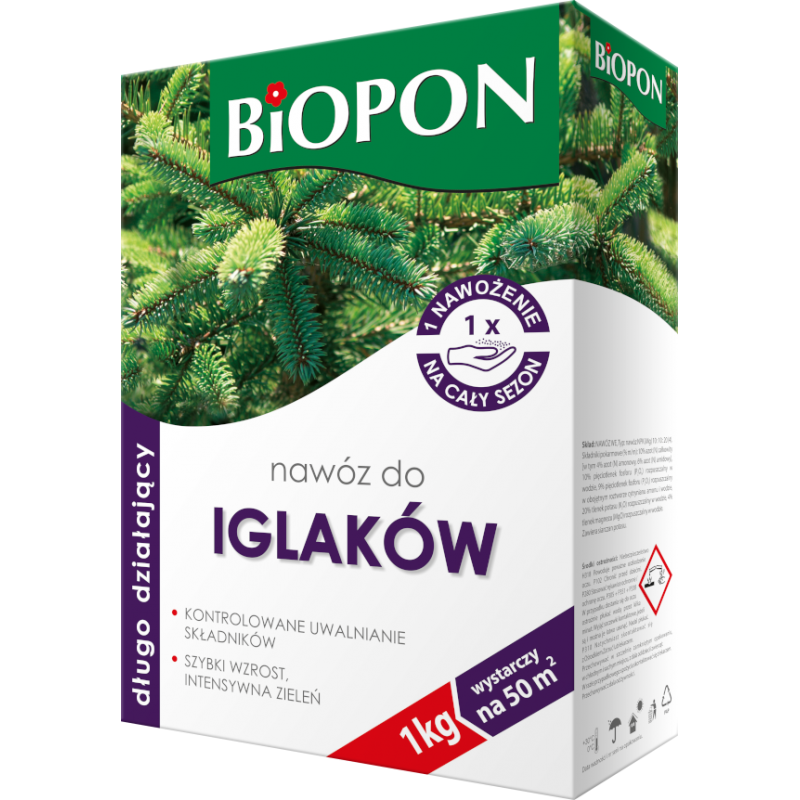 Dwufazowy nawóz granulowany dostosowany do potrzeb drzew i krzewów iglastych. Jedno zastosowanie nawozu dostarcza roślinom wszystkie niezbędne składniki mineralne potrzebne do prawidłowego wzrostu i rozwoju.