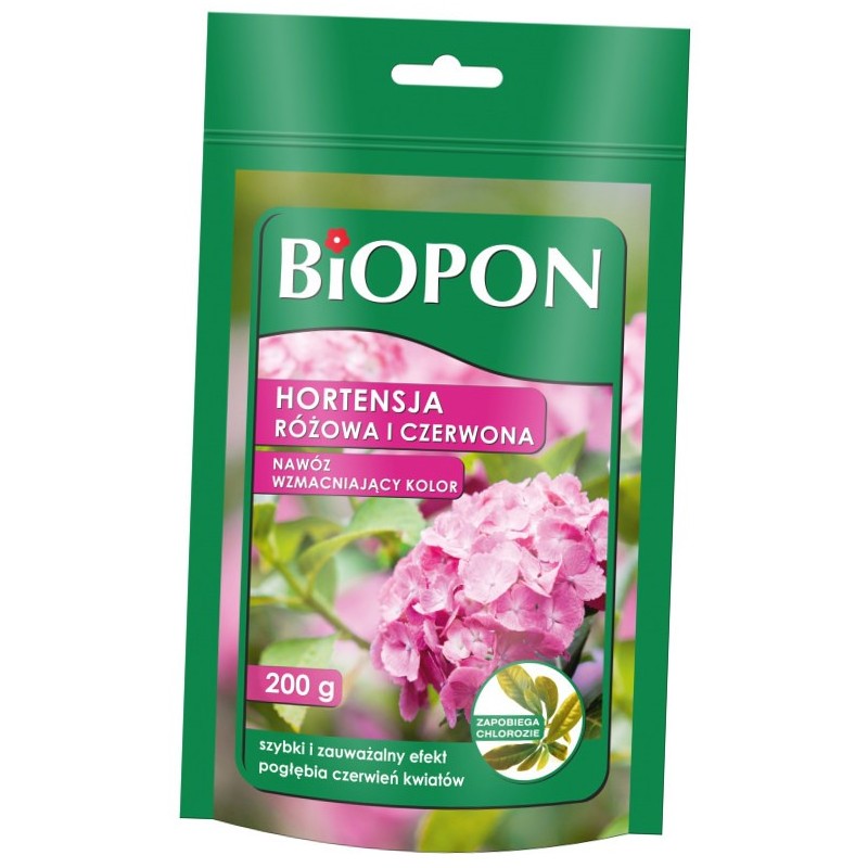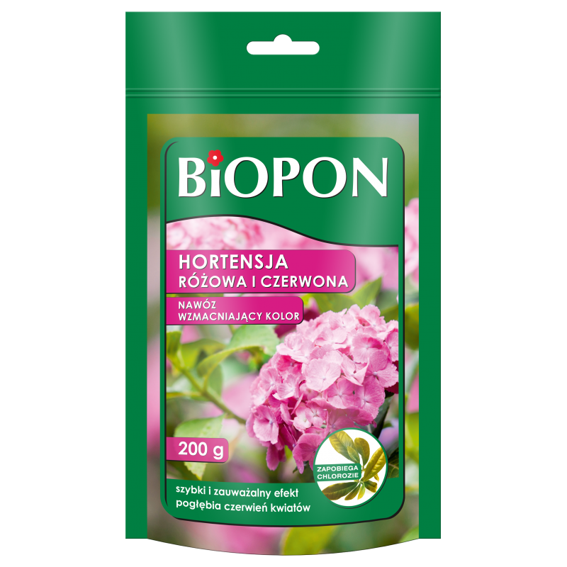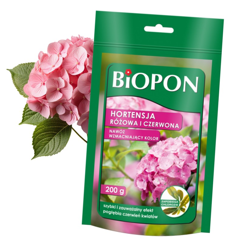 Specjalistyczny nawóz mineralny przeznaczony do zasilania różowych i czerwonych hortensji. Odpowiednio dobrany skład pogłębia czerwone wybarwienie kwiatów i utrwala ich pigmentację, dzięki czemu zyskują one bardzo intensywny i nasycony kolor. Stosowanie nawozu wspomaga obfite kwitnienie i zrównoważony wzrost hortensji. Wysoka zawartość wapnia utrzymuje pH gleby na właściwym poziomie, a dodatek schelatowanego żelaza zapobiega chlorozie roślin.