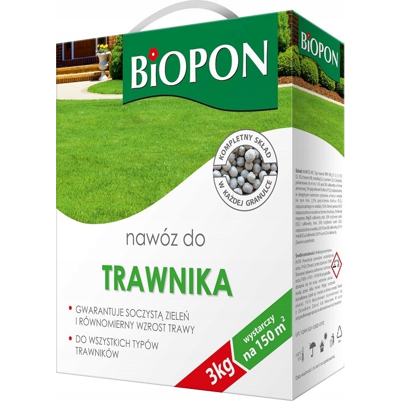 Wieloskładnikowy nawózprzeznaczony zarówno do wieloletnich, jak i nowo zakładanych trawników. Zawiera komplet składników odżywczych niezbędnych do prawidłowego wzrostu trawy, która pod wpływem dużej zawartości azotu krzewi się intensywnie i buduje zwartą, silną darń. Regularne stosowanie nawozu powoduje, że trawnik wygląda zdrowo, jest gęsty i ma intensywnie zielony kolor.