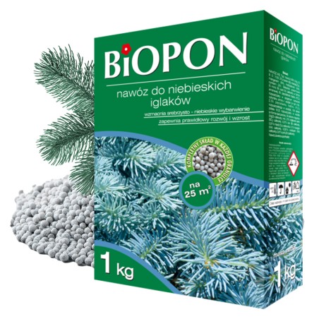Wieloskładnikowy nawóz przeznaczony do wszystkich roślin iglastych o niebieskawym odcieniu, z takich gatunków jak sosna, świerk, jodła, tuja, jałowiec, cyprysik. Dostarcza im wszystkich substancji odżywczych potrzebnych do prawidłowego rozwoju i wzrostu oraz wzmacnia srebrzysto-niebieskie wybarwienie igieł. Ponadto odpowiednio reguluje odczyn podłoża, dostosowując go do potrzeb drzew i krzewów iglastych. Nawóz może powodować powstawanie brunatnych plam na elementach betonowych, ceramicznych i kamiennych. W przypadku rozsypania nawozu poza trawnik, niezwłocznie go zebrać, a pozostałości zmyć wodą. Powstałe plamy przemyć roztworem kwasu cytrynowego.