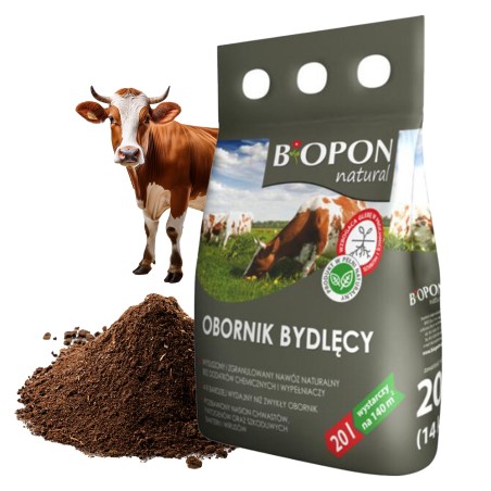 Pełnowartościowy, naturalny i łatwo przyswajalnynawózprodukowany z czystego obornika bydlęcego, przeznaczony do nawożenia warzyw, drzew i krzewów owocowych, trawników, iglaków i innych roślin ogrodowych. Ma postać trwałego granulatu, dzięki czemu uwalnianie składników pokarmowych jest stopniowe i rozłożone w czasie. Skutecznie poprawia właściwości fizyczne i chemiczne gleby. Jest w pełni bezpieczny dla roślin, a przy tym 4 razy wydajniejszy od tradycyjnego obornika.