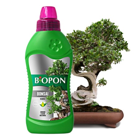 Specjalistyczny nawóz mineralny do bonsai. Te drzewka, mające szczególne wymagania odnośnie pielęgnacji, należy ustawiać w jasnym miejscu (z dala od źródeł ciepła) i nie podlewać zbyt obficie. Zasilanie BIOPON-em do bonsai daje drzewkom zdrowy wygląd.
