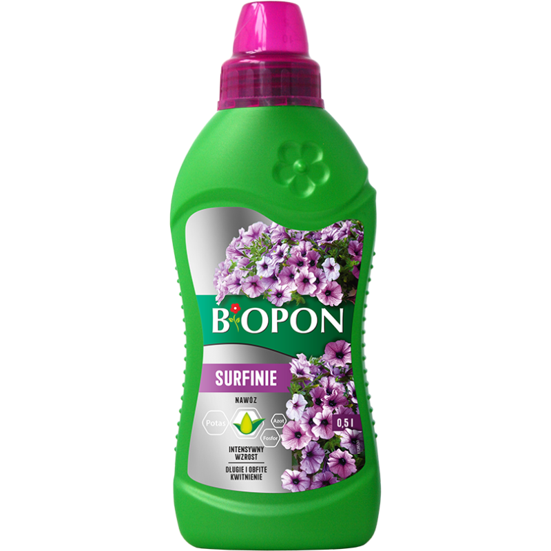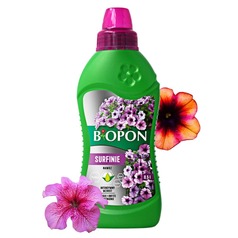 Wieloskładnikowy nawóz mineralny do surfinii. Odpowiednio dobrane proporcje makroelementów zapewniają optymalny wzrost roślin.   Idealnie dobrana zawartość potasu pobudza je do obfitego kwitnienia.