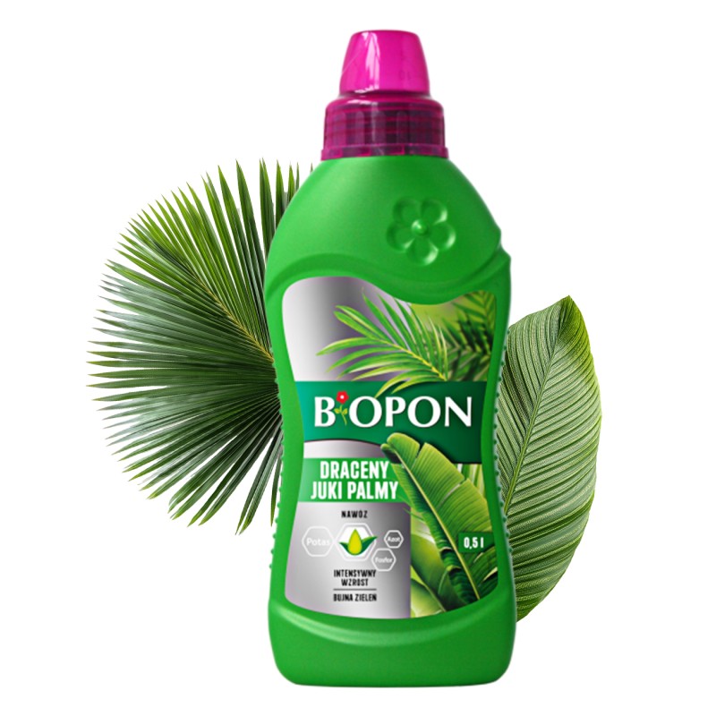 Juka, palma i dracena wymagają odpowiedniej pielęgnacji i nawożenia. Zasilane BIOPON-em rośliny mają soczyście zielony kolor i intensywnie rosną.