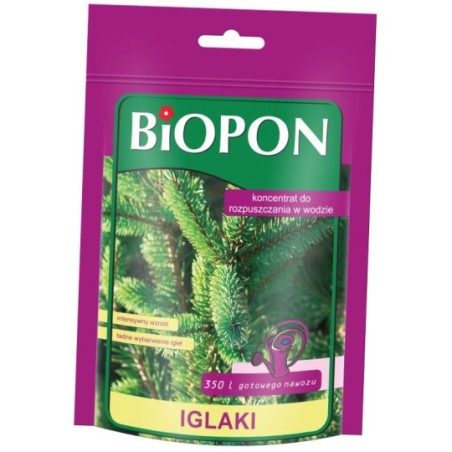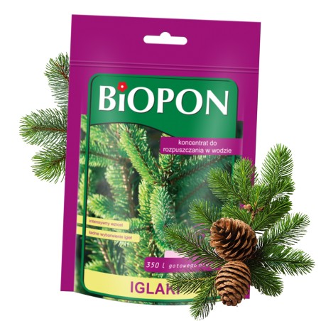 iglaków słabo rosnących wzmacnia je i poprawia wygląd. Podwyższona zawartość azotu poprawia wybarwienie igieł, a dodatek magnezu zapobiega ich brunatnieniu. Jest bardzo wydajny. Opakowanie wystarczy do sporządzenia 350 l gotowego do użycia nawozu.