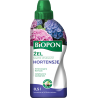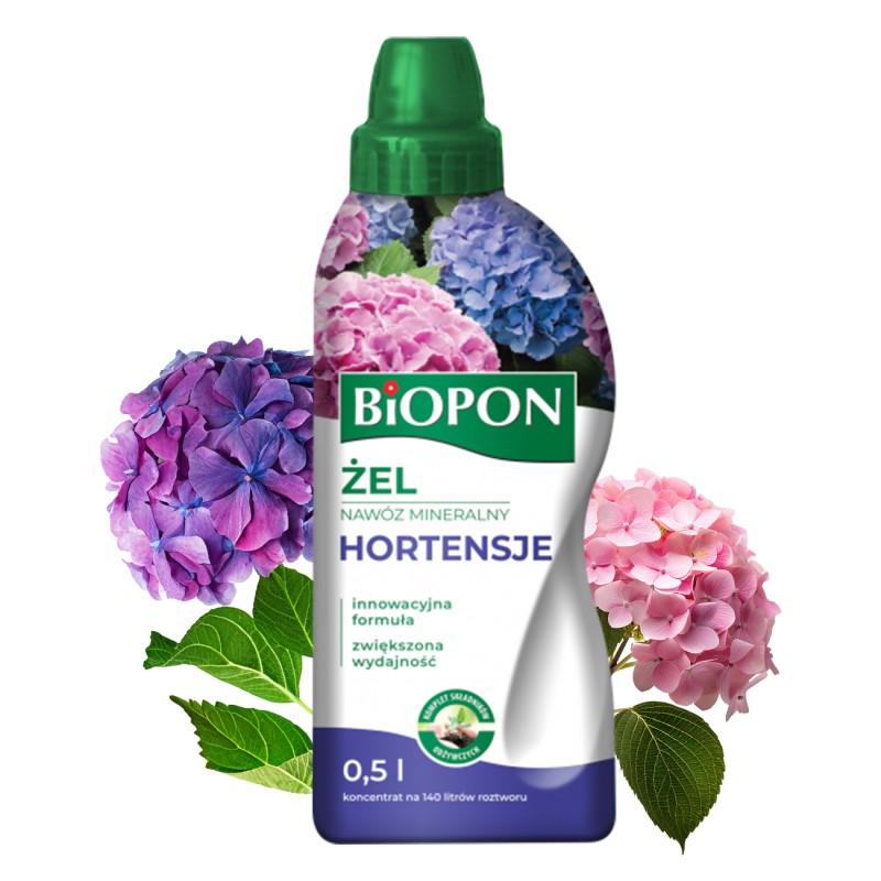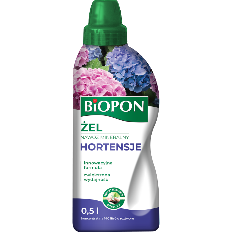 Nowoczesny i wyjątkowo wydajny nawóz mineralny, przeznaczony do zasilania hortensji. Regularnie stosowany stymuluje rozwój pąków, zapewnia długie i obfite kwitnienie oraz piękne wybarwienie kwiatów. Gęsta konsystencja rozpuszczalnego w wodzie żelu sprawia, że nawóz jest łatwo przyswajalny przez rośliny i wygodny w użyciu. Nie rozpryskuje się przy nalewaniu i umożliwia precyzyjne dozowanie. Działa kompleksowo, dostarczając hortensjom wszystkie niezbędne składniki pokarmowe.