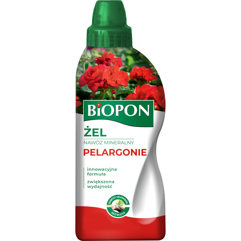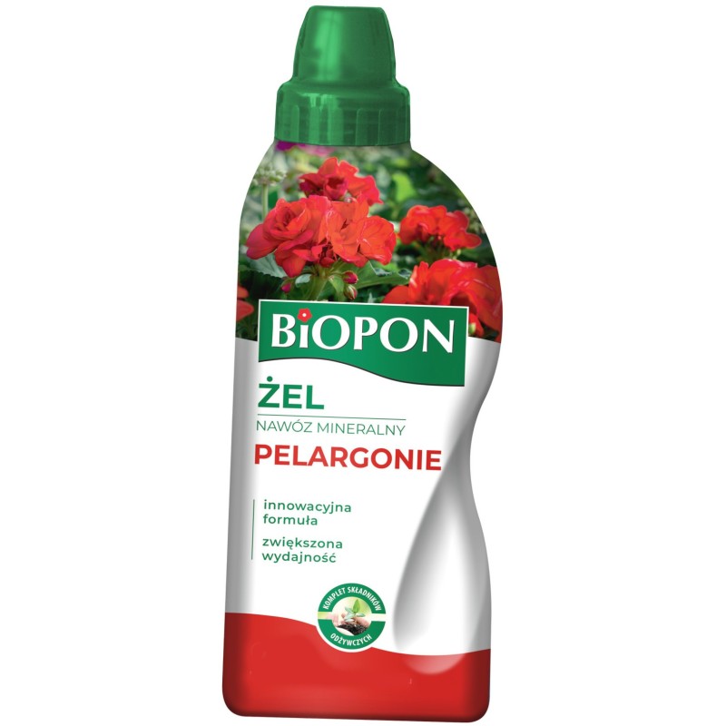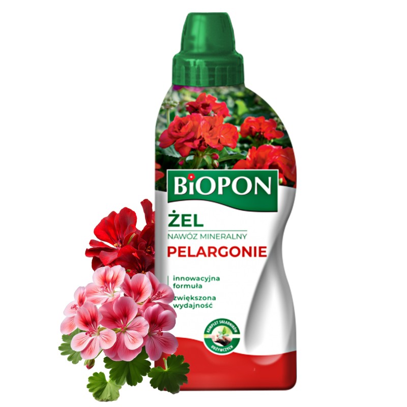 Nowoczesny i wyjątkowo wydajny nawóz mineralny, przeznaczony do pielęgnacji wszystkich odmian pelargonii. Całkowicie pokrywa zapotrzebowanie tych roślin na niezbędne składniki odżywcze. Regularnie stosowany wspomaga tworzenie i rozwój pąków, przedłuża okres kwitnienia oraz zapewnia intensywną barwę kwiatów i liści. Gęsta konsystencja rozpuszczalnego w wodzie żelu sprawia, że nawóz jest łatwo przyswajalny przez rośliny i wygodny w użyciu. Nie rozpryskuje się przy nalewaniu i umożliwia precyzyjne dozowanie.