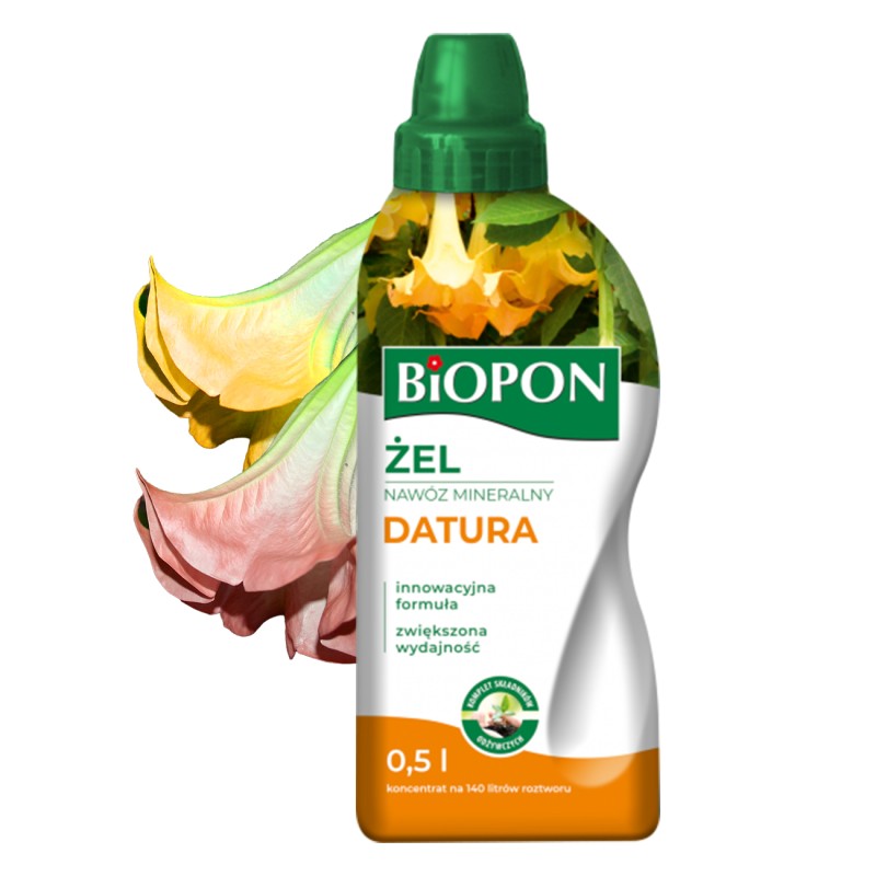 Nowoczesny i wyjątkowo wydajny nawóz mineralny, przeznaczony do zasilania datury. Regularnie stosowany pomaga w uzyskaniu wyjątkowo pięknych i dorodnych kwiatów oraz intensywnie zielonych liści. Gęsta konsystencja rozpuszczalnego w wodzie żelu sprawia, że nawóz jest łatwo przyswajalny przez rośliny i wygodny w użyciu.Nie rozpryskuje się przy nalewaniu i umożliwia precyzyjne dozowanie. Działa kompleksowo, dostarczając daturze wszystkie niezbędne składniki pokarmowe.