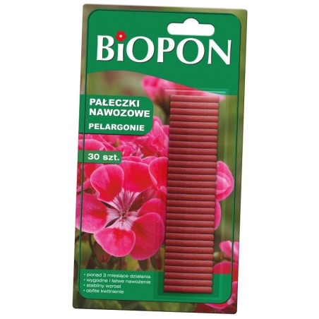 Wieloskładnikowy nawóz w postaci pałeczek przeznaczony do pielęgnacji pelargonii. Zwiększona dawka potasu i fosforu zapewnia intensywny wzrost, bujne kwitnienie oraz piękne wybarwienie kwiatów i liści. Nawożone rośliny są mniej wrażliwe na wiatr oraz lekkie przymrozki. Nawóz jest wydajny, szybko przyswajalny i wygodny w użyciu. Pałeczki stopniowo ulegają rozpuszczeniu przez co rośliny otrzymują pokarm regularnie i długotrwale – do 2 miesięcy.