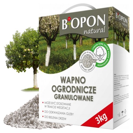Wapno ogrodnicze w postaci wysokoreaktywnego i łatwo rozpuszczalnego w wodzie granulatu, przeznaczone zarówno do bielenia drzew, jak i do odkwaszania gleby o zbyt niskim odczynie pH. Granulowana postać preparatu powoduje, że można go stosować na terenach obsadzonych już trawą lub innymi roślinami. Preparat skutecznie stymuluje rozwój dobroczynnej mikroflory, polepsza strukturę fizyczną gleby i aktywizuje wchłanianie azotu, fosforu, wapnia, magnezu i boru.