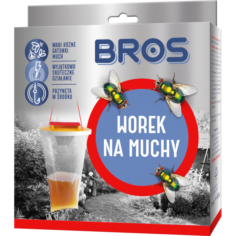 Worek na muchy to wyjątkowo skuteczna pułapka do monitorowania obecności much na terenach otwartych poprzez ich odławianie. Wyłapywanie much pozwala na wykrycie obecności tych owadów i ocenę ich liczby. Obserwacja wyłapanych much umożliwia podjęcie decyzji o ewentualnym zastosowaniu środka bójczego celem ich zwalczenia.  Owady wabione są naturalną, nietoksyczną przynętą umieszczoną wewnątrz pułapki, a specjalna konstrukcja produktu uniemożliwia wydostanie się ich ze środka. Atrakcyjny środek wabiący oraz duży rozmiar worka pozwalają wyłapać dziesiątki tysięcy much w krótkim czasie. Pułapka nadaje się do monitorowania zdecydowanej większości gatunków much występujących na terenie Polski.