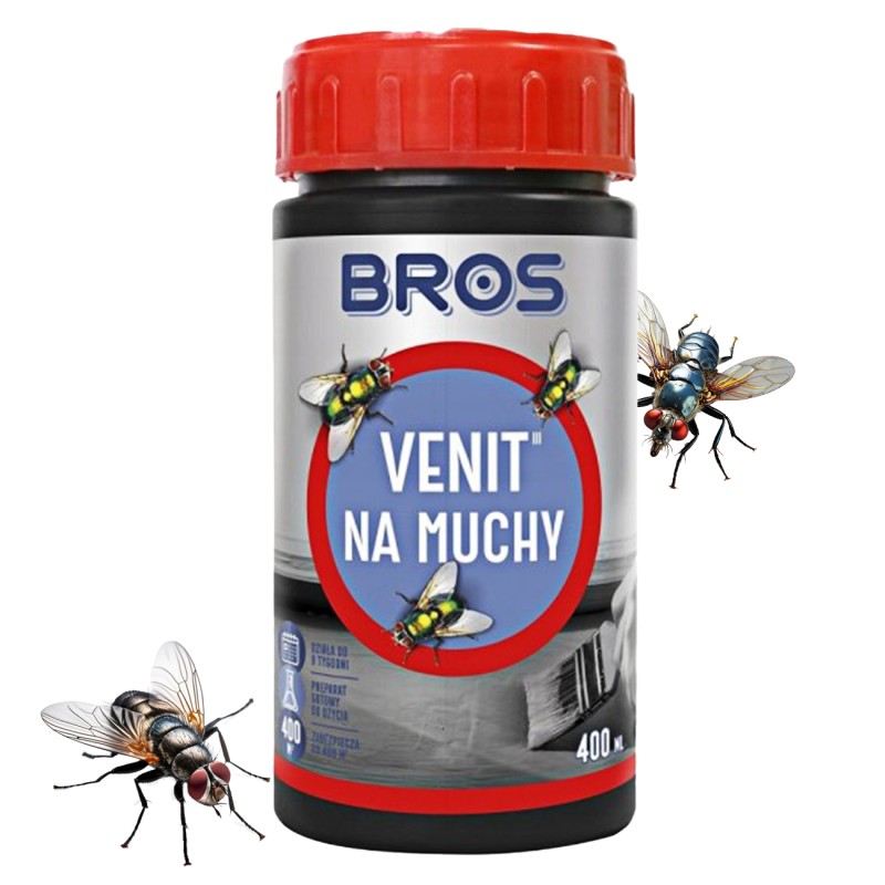 Preparat w postaci gotowego do użycia płynu, skutecznie zwalcza muchy domowe i zwierzęce w pomieszczeniach mieszkalnych i inwentarskich (chlewnie, obory, stajnie, kurniki i inne). Zawiera atraktant, dzięki czemu skutecznie wabi muchy do pomalowanych powierzchni.