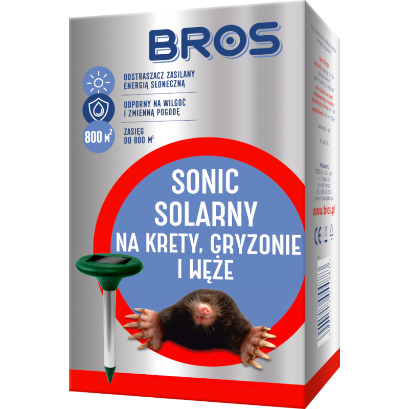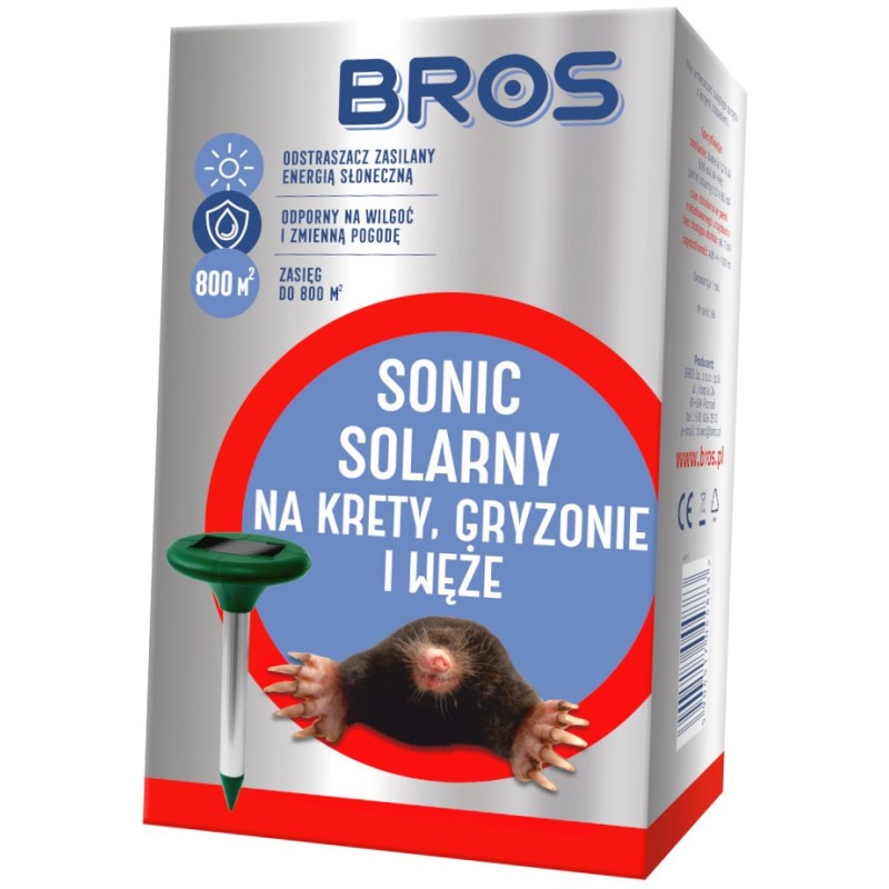 Odstraszacz na krety zasilany energią słoneczną. Akumulator zapewnia nieprzerwaną pracę w dzień i w nocy. Emituje fale dźwiękowe oraz drgania, które skutecznie odstraszają szkodniki.
