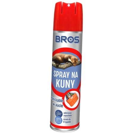 Gotowy do użycia aerozol skutecznie odstrasza kuny. Może być stosowany w pomieszczeniach (np. garaże, strychy, piwnice), w pojazdach i na zewnątrz budynków. Przy sprzyjających warunkach pogodowych działa aż do 8 tygodni.