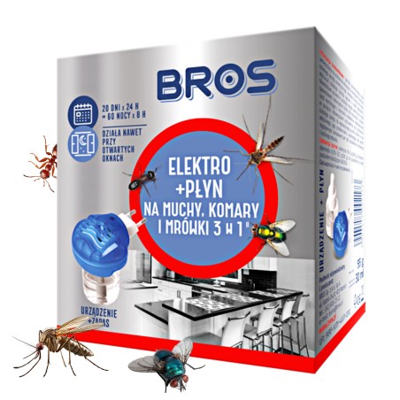 Urządzenie na muchy, komary i mrówki BROS Elektro 3w1 + Płyn 30ml