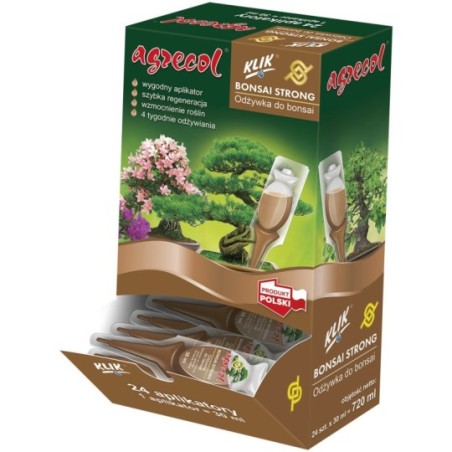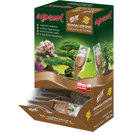 Bonsai Strong – to specjalistyczny i wyjątkowo innowacyjny preparat przeznaczony do regeneracji wszystkich gatunków roślin formowanych zgodnie ze sztuką bonsai. Specjalna formuła ułatwia pobieranie składników oraz wzmacnia rośliny. Regularne stosowanie wpływa na dobrą kondycję systemu korzeniowego i zapewnia soczyste wybarwienie liści. Dzięki odżywce rośliny lepiej znoszą częste przycinanie. Profesjonalne i estetyczne aplikatory są łatwe w użyciu.