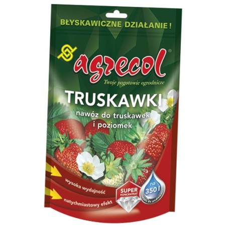 Truskawki – to nawóz krystaliczny do rozpuszczania w wodzie. Przeznaczony do zasilania wszelkich odmian truskawek, poziomek i malin. Odpowiedni dobór składników pokarmowych zapewnia obfite plonowanie oraz dorodne i smaczne owoce. Nawóz nie powoduje gromadzenia się szkodliwych azotanów w owocach. Nawozy krystaliczne to nawozy interwencyjne – natychmiastowo uzupełniają niedobory składników pokarmowych za sprawą minerałów, które są dostępne dla roślin w łatwo przyswajalnych formach.