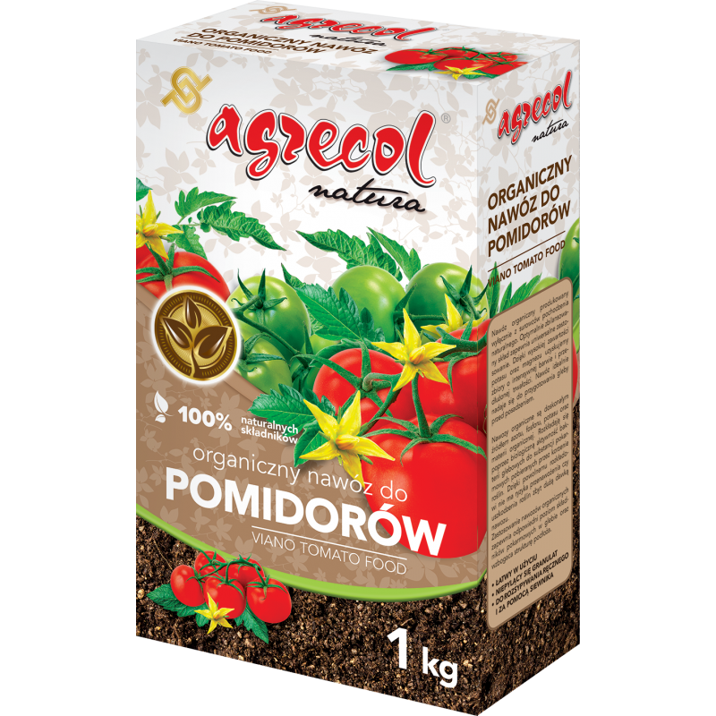 Organiczny nawóz do pomidorów to wysokiej jakości granulowany nawóz. Przeznaczony do nawożenia pomidorów, papryki i oberżyny (bakłażana). Wysoka zawartość potasu zapewnia obfite kwitnienie oraz prawidłowe owocowanie. Stosowanie nawozu zapewnia uzyskanie zdrowych, dorodnych i smacznych owoców, jednocześnie przedłużając ich trwałość po zbiorze.
