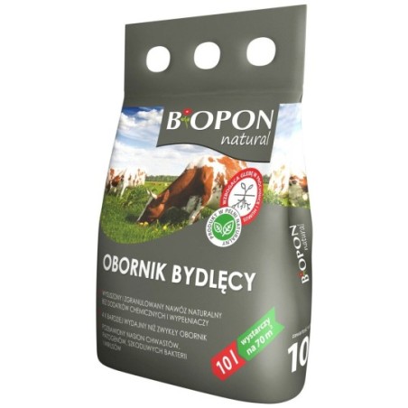 Pełnowartościowy, naturalny i łatwo przyswajalnynawózprodukowany z czystego obornika bydlęcego, przeznaczony do nawożenia warzyw, drzew i krzewów owocowych, trawników, iglaków i innych roślin ogrodowych. Ma postać trwałego granulatu, dzięki czemu uwalnianie składników pokarmowych jest stopniowe i rozłożone w czasie. Skutecznie poprawia właściwości fizyczne i chemiczne gleby. Jest w pełni bezpieczny dla roślin, a przy tym 4 razy wydajniejszy od tradycyjnego obornika.