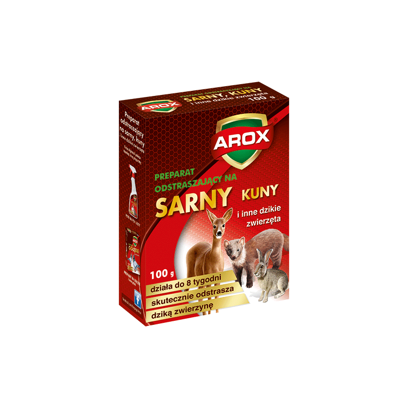 Produkt przeznaczony do odstraszania kun, dzików i zwierzyny płowej (jelenie, sarny, daniele) oraz kretów i nornic.