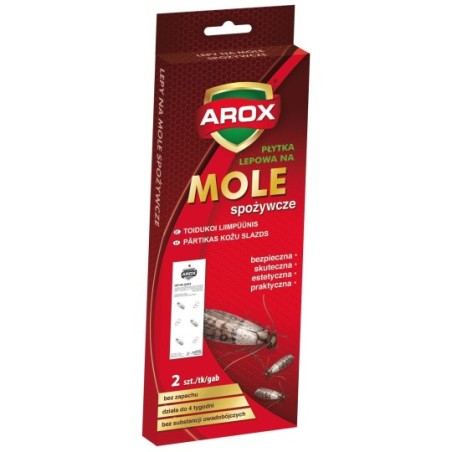 Płytka lepowa na mole spożywcze w postaci płaskiej tabliczki pokrytej substancją klejącą. Przeznaczona do monitorowania obecności moli spożywczych poprzez ich odławianie z pomieszczeń kuchennych, spiżarni oraz wszelkich innych pomieszczeń, w których przechowywane są artykuły spożywcze. Produkt nie zawiera substancji owadobójczych co sprawia, że może być stosowany bezpośrednio w miejscach przechowywania artykułów takich jak: kasze, płatki, mąka, makarony, kakao, czekolada, kawa zbożowa, suszone owoce itp. Produkt w naturalny sposób wabi owady, które przyklejają się do powierzchni pokrytej substancją klejącą.