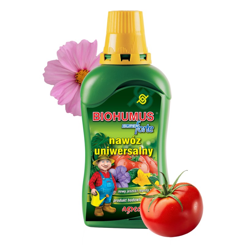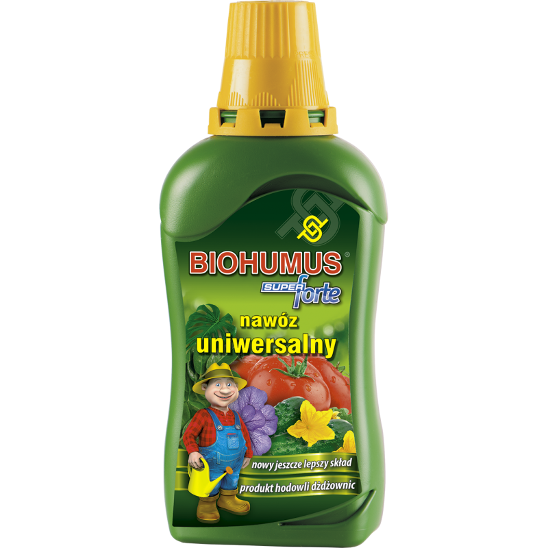 Biohumus Super Forte nawóz uniwersalny to płynny nawóz organiczno-mineralny. Nawóz jest przeznaczony do nawożenia wszelkich roślin ozdobnych uprawianych w domu, na balkonie, na tarasie i w ogrodzie. Nawóz ten zawiera łatwo przyswajalny azot, fosfor i potas – składniki niezbędne roślinom do prawidłowego wzrostu. Systematyczne stosowanie nawozu sprawia, że rośliny są dobrze odżywione. Dzięki temu rośliny są bardziej odporne na niekorzystne czynniki, tj. susza, niskie temperatury, choroby czy szkodniki. Biohumus Super Forte uniwersalny wprowadza do podłoża substancje pochodzenia organicznego i mineralnego bez ryzyka przenawożenia.