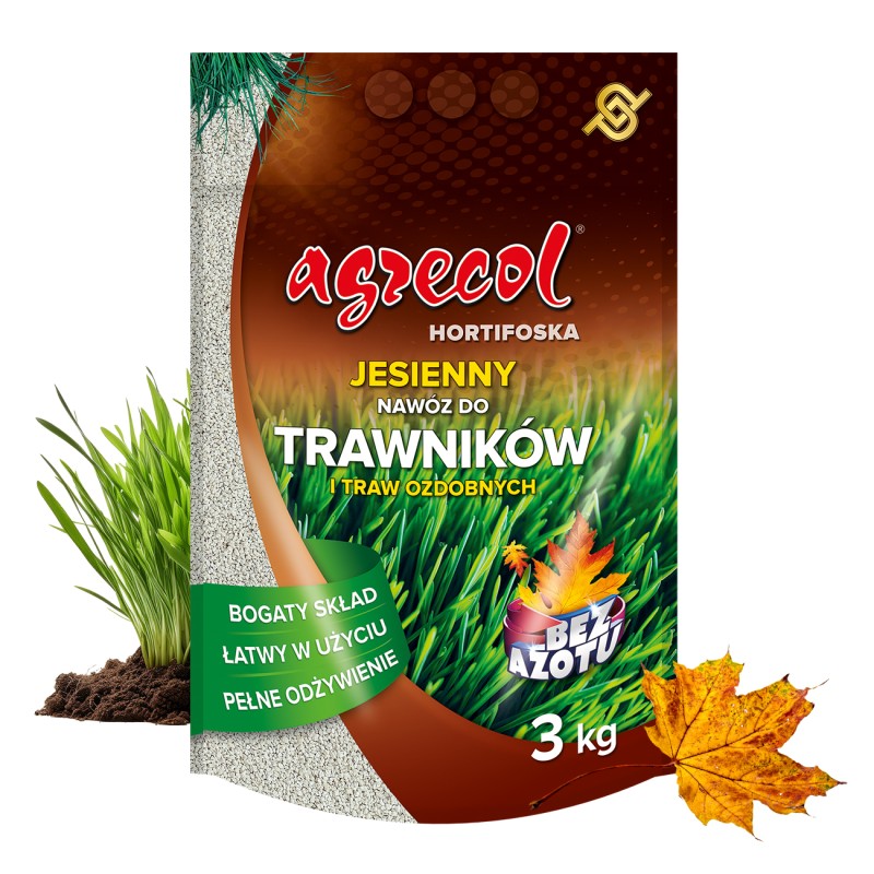 Hortifoska nawóz jesienny do trawników to granulowany nawóz fosforowo-potasowy, przeznaczony do jesiennego nawożenia trawników. Doskonały również do nawożenia traw ozdobnych, np. miskantów, rozplenic, kostrzew, traw pampasowych i innych traw o wysokim zapotrzebowaniu pokarmowym. Nawóz służy przede wszystkim przygotowaniu roślin na trudne zimowe warunki. Nawozy jesienne warto zacząć już stosować latem (nawet od lipca, zamiast nawozów azotowych).