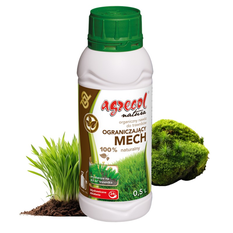 Organiczny nawóz do trawników ograniczający mech to w 100% naturalny nawóz płynny, zwalczający mech. To pierwszy tego typu preparat na rynku. Płynny nawóz nie tylko odżywia trawnik, ale także skutecznie ogranicza rozwój mchu. Organiczny preparat do trawników ograniczający mech nie zawiera fosforanów. Fosfor w postaci płynnej stosowany w nadmiernych ilościach może dostawać się do wód gruntowych, co jest niepożądane dla środowiska. Ponadto fosfor pobudza trawę do kwitnienia, co w przypadku trawników nie jest pożądaną cechą.