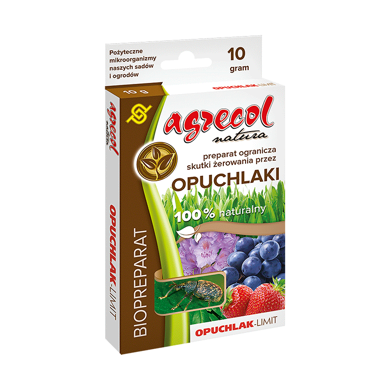 Opuchlak-LIMIT to preparat mikrobiologiczny stwarzający niekorzystne warunki dla rozwoju i żerowania larw opuchlaka w uprawie roślin jagodowych i ozdobnych.