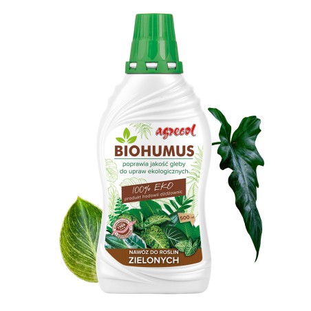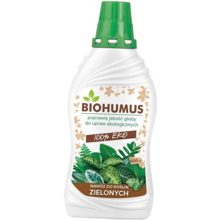 Biohumus nawóz do roślin zielonych to płynny nawóz organiczny. Przeznaczony do zasilania wszelkich gatunków roślin zielonych i ozdobnych z liści. Preparat z powodzeniem może być stosowany w uprawie roślin we wnętrzach, ale także do podlewania roślin uprawianych w gruncie w ogrodzie. Biohumus do roślin zielonych zawiera odpowiednio dobrane formy łatwo przyswajalnego azotu niezbędnego do prawidłowego rozwoju zielonych części roślin. Systematyczne stosowanie nawozu gwarantuje wysoką zdrowotność i bujny wzrost roślin. Biohumus do roślin zielonych można stosować także w uprawach roślin kwitnących, znajdujących się poza okresem kwitnienia.