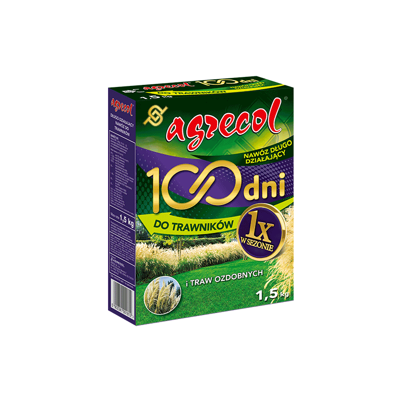 100 dni nawóz do trawników i traw ozdobnych to nawóz w postaci granulowanej z makro- i mikroskładnikami o szybkim, a jednocześnie długotrwałym działaniu. Przeznaczony do zasilania wszystkich rodzajów trawników oraz gatunków traw ozdobnych. Może być stosowany na trawnikach na stanowiskach słonecznych i zacienionych. Zalecany do odżywiania intensywnie eksploatowanej murawy. Doskonały również do zakładania nowych trawników. Nawóz 100 dni do trawników i traw ozdobnych zapewnia kompleksowe odżywienie przez długi czas trawnikom intensywnie użytkowanym oraz często koszonym. Sprawia że darń jest równomiernie zagęszczona oraz soczyście zielona.