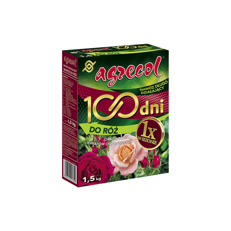 100 dni nawóz do róż oraz innych kwiatów ogrodowych to nawóz w postaci granulowanej z makro- i mikroskładnikami o szybkim, a jednocześnie długotrwałym działaniu. Przeznaczony do zasilania róż ogrodowych: rabatowych, parkowych, piennych, okrywowych, pnących i innych. Doskonale sprawdza się również do zasilania innych kwitnących krzewów w ogrodzie. Specjalnie dobrane składniki pokarmowe w odpowiednich proporcjach pobudzają rośliny kwitnące do zawiązywania dużej ilości okazałych kwiatów. Stopniowo uwalniane składniki pokarmowe zmniejszają ryzyko przenawożenia.