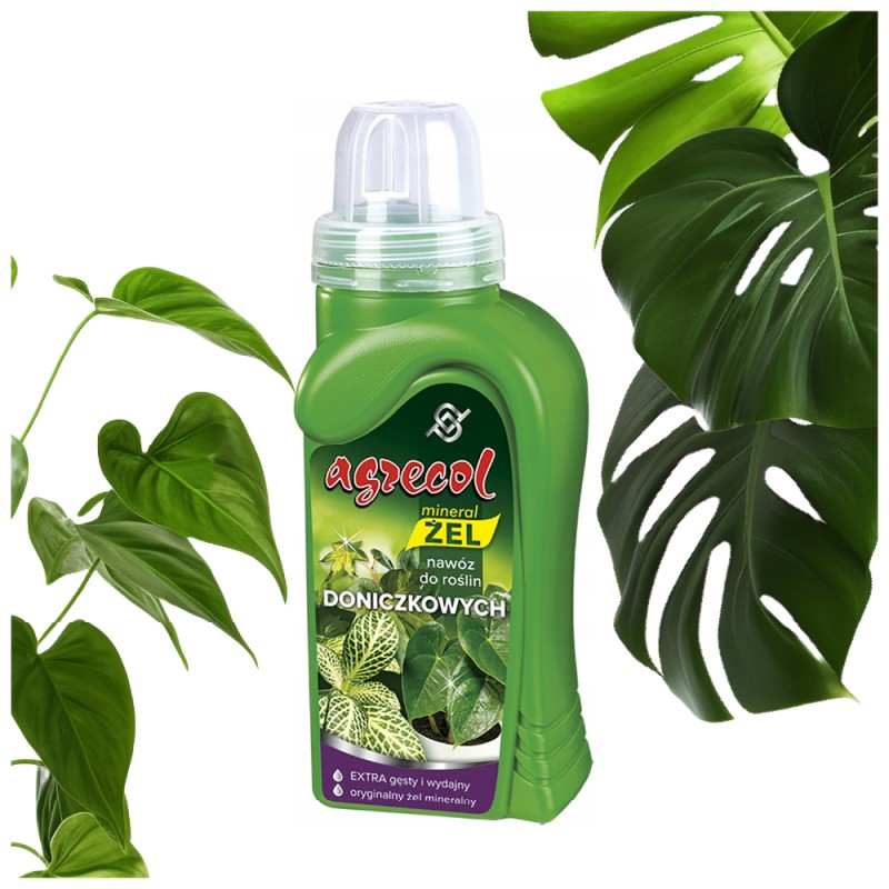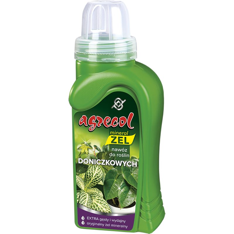 Nawóz do roślin doniczkowych z serii Mineral żel to płynny nawóz mineralny w postaci żelu, do rozpuszczania w wodzie. Przeznaczony do całorocznego uzupełniania makro- i mikroskładników pokarmowych w uprawach roślin doniczkowych, rosnących w warunkach domowych. Zalecany do nawożenia zarówno roślin ozdobnych z liści jak i kwitnących. Żelowa formuła nawozu bardzo łatwo rozpuszcza się w wodzie.