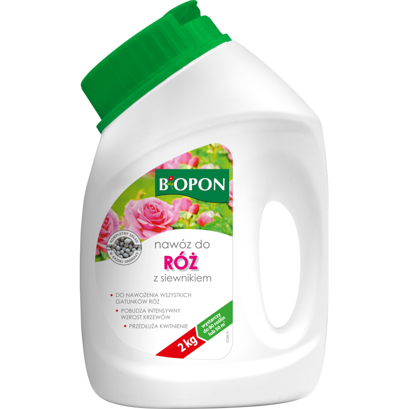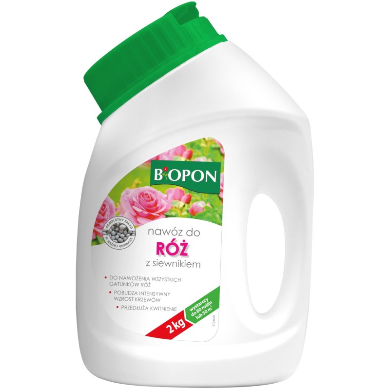 Wieloskładnikowy nawózo wysokiej zawartości składników pokarmowych, specjalnie dostosowanych do wymagań wszystkich gatunków róż. Wysoka zawartość potasu poprawia ogólną kondycję roślin i podnosi ich odporność na wymarzanie.