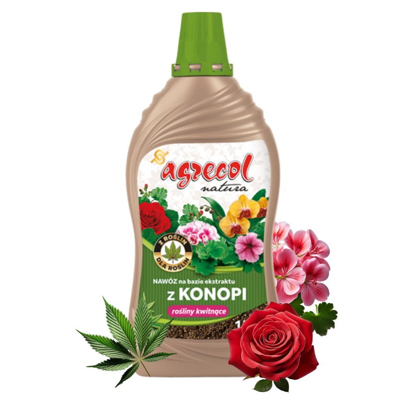 Płynny nawóz organiczno-mineralny przeznaczony do nawożenia roślin kwitnących w domu i na balkonie. Nawóz powstał na bazie ekstraktu z konopii (Cannabis sativa), dzięki czemu stanowi on nie tylko źródło składników pokarmowych dla roślin, ale również wpływa pozytywnie na właściwości fizykochemiczne oraz biologiczne gleb i podłoży.