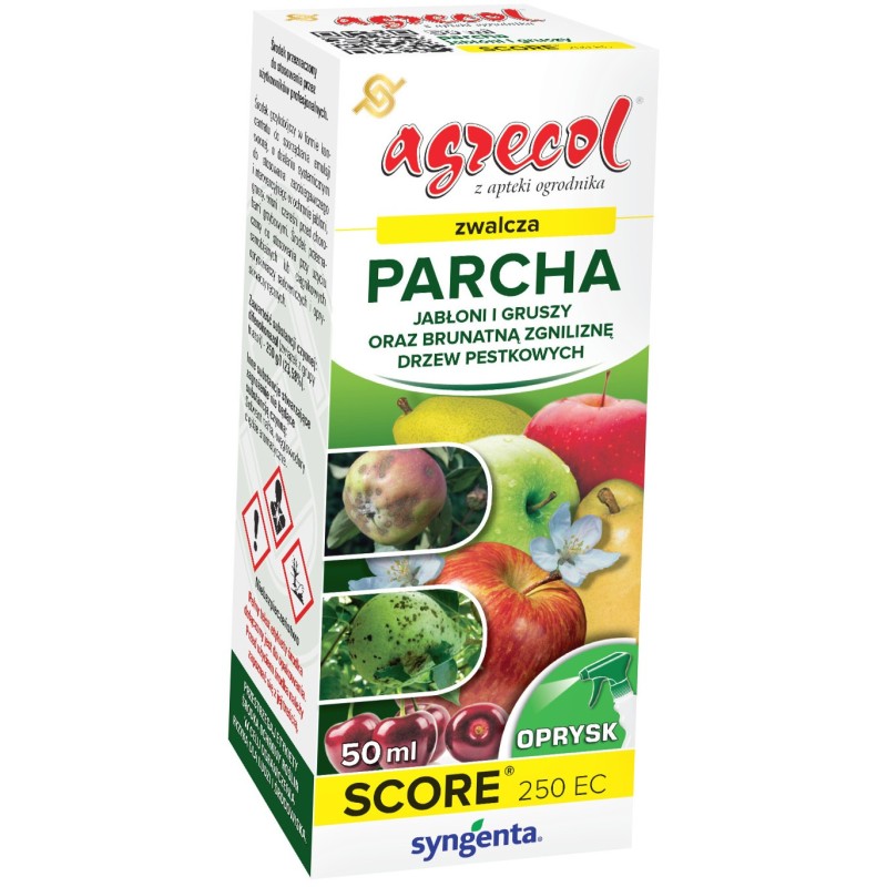 Score 250 EC to środek grzybobójczy w formie koncentratu do sporządzania emulsji wodnej, o działaniu systemicznym do stosowania zapobiegawczego i interwencyjnego w ochronie jabłoni, gruszy, wiśni i czereśni przed chorobami grzybowymi.
