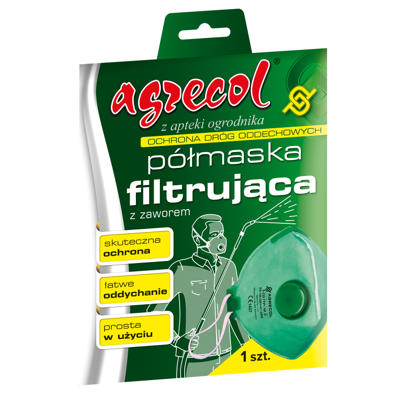 Półmaska filtrująca jest kompletnym sprzętem ochrony układu oddechowego i jest przeznaczona do ochrony użytkownika przed szkodliwym oddziaływaniem zanieczyszczeń powietrza występujących w postaci cząstek stałych i/lub ciekłych tworzących aerozole (pyły, dymy i mgły), powstające w czasie stosowania środków ochrony roślin.