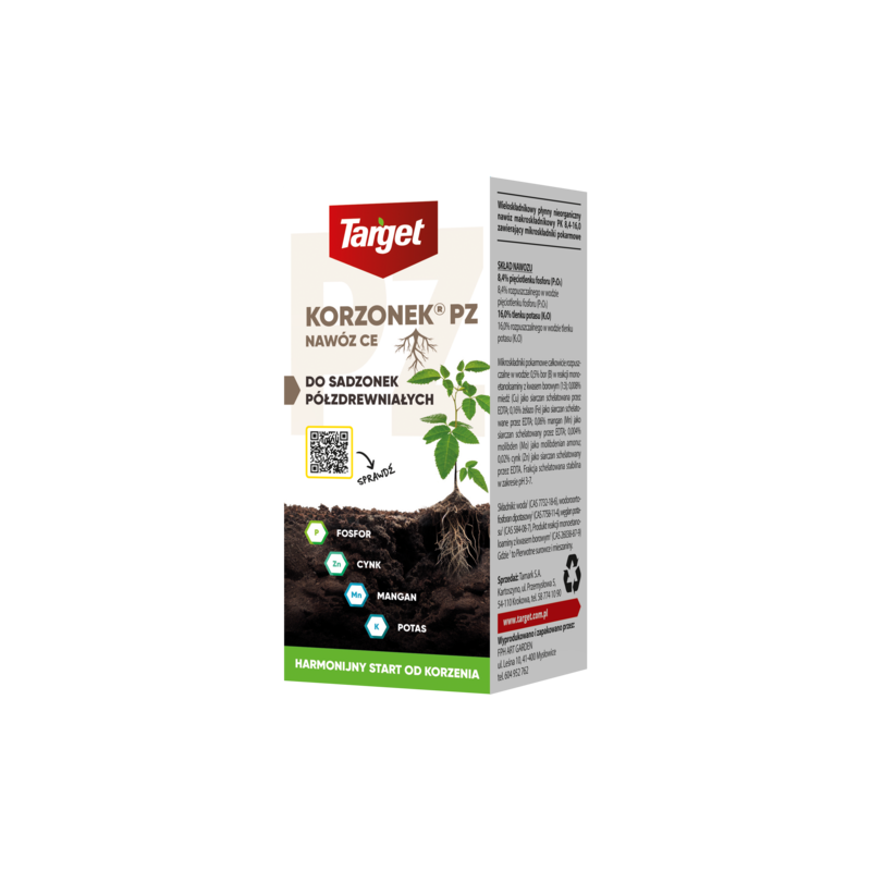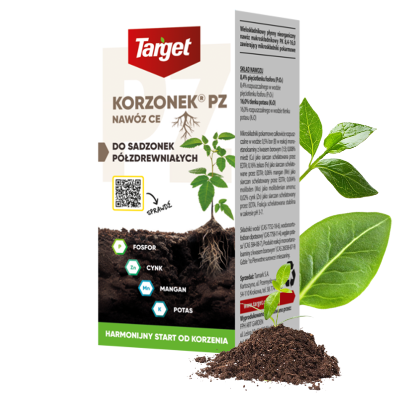 Korzonek® Pz wpływa na prawidłowy i szybki wzrost systemu korzeniowego. Nie wymaga stosowania dodatkowo innych ukorzeniaczy. Zawiera aktywatory procesów korzenienia oraz podstawowe składniki pokarmowe: fosfor i potas a także mikroskładniki: bor, miedź, żelazo, mangan, molibden i cynk.