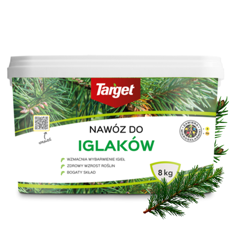 Gotowy do użycia idealnie skomponowany nawóz wieloskładnikowy zawierający mieszankę składników pokarmowych takich jak azot, fosfor i potas oraz mikroskładników : boru, miedzi, żelaza, manganu i cynku przeznaczony do nawożenia różnych gatunków i odmian iglaków. Optymalny skład powoduje, że roślina otrzymuje tylko potrzebną i wystarczająca ilość składników pokarmowych. Dobrze odżywiona roślina jest odporniejsza na działanie szkodników czy chorób. Nawóz powoduje szybszy wzrost wszystkich gatunków iglaków. Zapobiega brązowieniu igieł oraz poprawia wybarwienie.