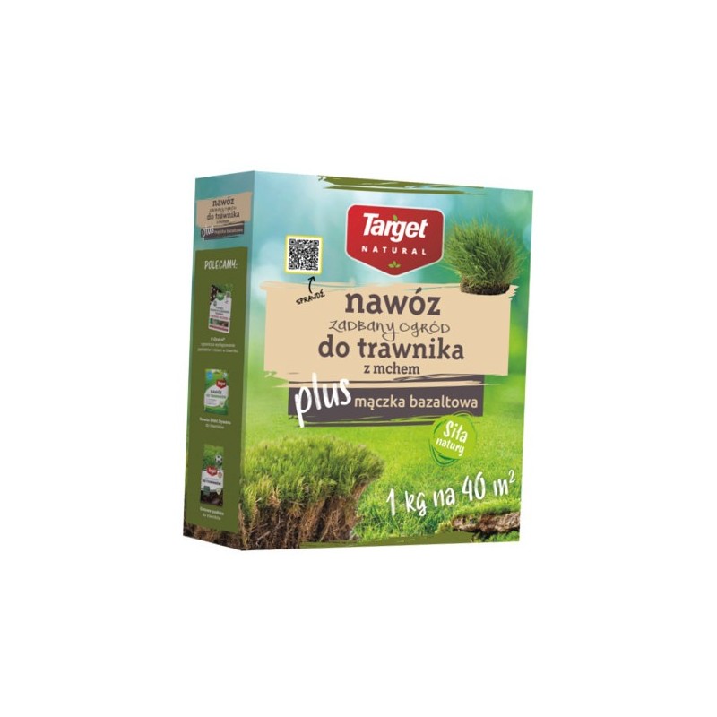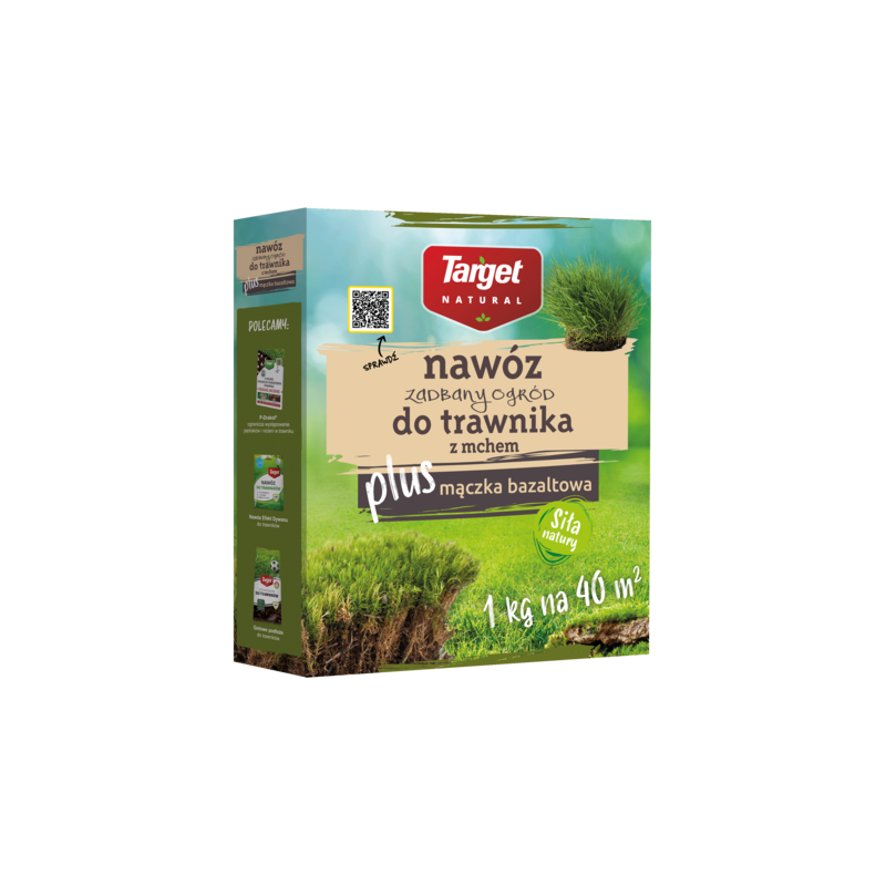 Nawóz Zadbany Ogród do trawnika z mchem z mączką bazaltową Target Natural jest nawozem stworzonym specjalnie z myślą o  trawnikach borykających się z problemem porastania przez mech. Wysoka zawartość żelaza w składzie nawozu, działa fitotoksycznie na mech i powoduje jego usychanie, a odpowiednio zbalansowane, niezbędne składniki pokarmowe odżywiają trawę, dodają jej wigoru i poprawiają kondycję. Wysoka zawartość mączki bazaltowej w nawozie (aż 25%!) sprawia, że trawnik zyskuje odporność na niesprzyjające warunki atmosferyczne, choroby czy szkodniki. Dodatkowo krzemionka zawarta w mączce bazaltowej poprawia mrozoodporność trawnika w zimowych miesiącach. Nawóz z mączką bazaltową to pierwszy tego typu nawóz, który powstał z myślą o przydomowych ogrodnikach i działkowiczach, którzy chcą jak najlepiej dbać o swój ogród, w tym również o  trawnik Unikalny skład nawozu, który został optymalnie skomponowany poprzez połączenie tradycyjnego nawozu z naturalną mączką bazaltową, wpływa pozytywnie na trawnik oraz glebę, a przy tym  jest wysoce przyswajalny przez korzenie roślin. Stosowanie nawozu zgodnie z zaleceniami nie niesie za sobą ryzyka wypalenia trawnika czy jego przenawożenia.