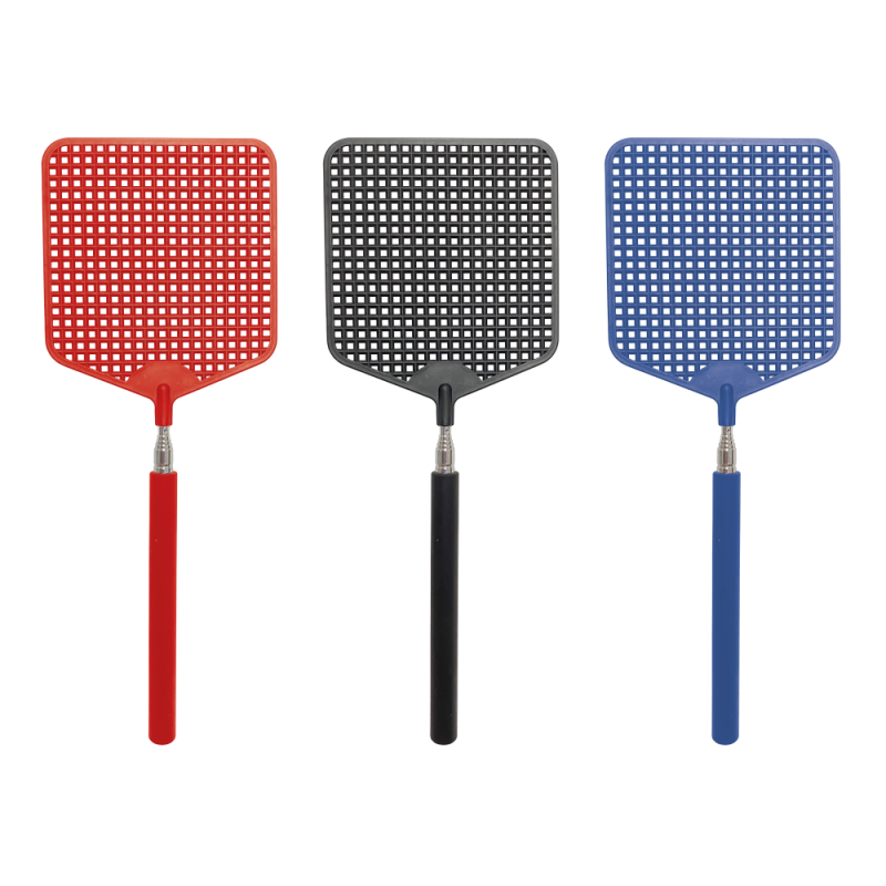 Nowoczesna packa na muchy wykonana z elastycznego tworzywa i stali nierdzewnej, dostępna w różnych kolorach. Dzięki teleskopowej wysuwanej rączce ma wyjątkowo duży zasięg – jej długość po rozłożeniu wynosi aż 72 cm. Po złożeniu zajmuje niewiele miejsca i jest łatwa do przechowywania – zmieści się w każdej szufladzie czy bagażu. Pokryty gumą termoplastyczną uchwyt jest przyjemny w dotyku, nie ślizga się w dłoni i umożliwia wygodne używanie packi.