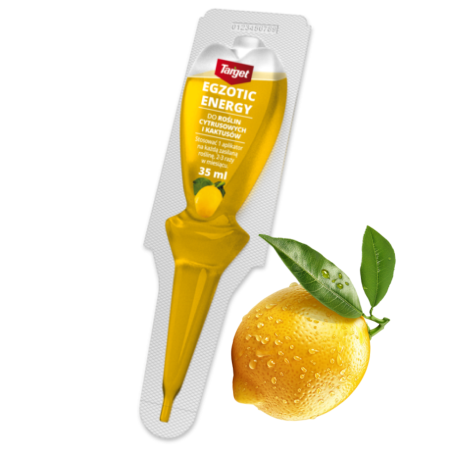 EFZOTIC ENERGY to innowacyjny gotowy do użycia preparat przeznaczony do zasilania roślin cytrusowych i kaktusów. Specjalnie dobrany skład zapewnia prawidłowy i zdrowy wzrost roślin, inicjuje wytwarzanie pąków oraz poprawia witalność roślin. Dodatek aktywatora metabolicznego powoduje, że substancje odżywcze są w szybki i łatwy sposób przyswajane przez roślinę, a jej wzmocniony system korzeniowy działa wydajniej. Samodozujący aplikator gwarantuje łatwość i wygodę stosowania. Pojedyncza ampułka zaopatruje roślinę w niezbędne substancje odżywcze przez okres aż do 4 tygodni.