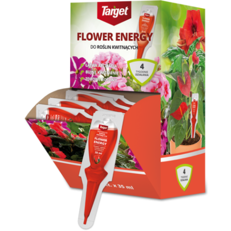 FLOWER ENERGY to innowacyjny gotowy do użycia preparat przeznaczony do zasilania wszystkich gatunków roślin kwitnących. Specjalnie dobrany skład zapewnia bujne kwitnienie, intensywne wybarwienie kwiatów oraz zdrowy wygląd liści. Dodatek aktywatora metabolicznego powoduje, że substancje odżywcze są w szybki i łatwy sposób przyswajane przez roślinę, a jej wzmocniony system korzeniowy działa wydajniej. Samodozujący aplikator gwarantuje łatwość i wygodę stosowania. Pojedyncza ampułka zaopatruje roślinę w niezbędne substancje odżywcze przez okres aż do 4 tygodni.