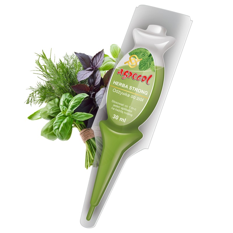 Herba Strong – odżywka do ziół. Specjalistyczny i wyjątkowo innowacyjny preparat przeznaczony do wzmocnienia wszystkich gatunków i odmian roślin zielarskich. Zawarte w odżywce ekstrakty substancji humusowych wpływają regenerująco na podłoże. Specjalna formuła stymuluje wzrost włośników korzeniowych, dzięki czemu roślina może efektywniej pobierać składniki pokarmowe. Regularne stosowanie zapewnia obfity plon aromatycznych i zdrowych liści. Profesjonalne i estetyczne aplikatory są łatwe w użyciu.