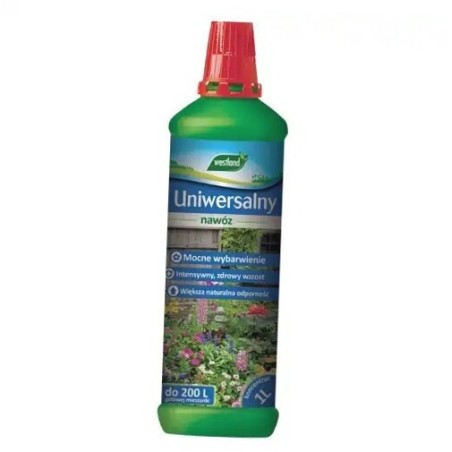 Nawóz w płynie uniwersalny to wielofunkcyjny preparat odżywczy przeznaczony do nawożenia wszystkich rodzajów roślin domowych, balkonowych i ogrodowych. Produkt wspiera zdrowy wzrost, bujne kwitnienie oraz intensywne wybarwienie liści i kwiatów. Wygodna płynna forma ułatwia stosowanie i szybkie wchłanianie składników odżywczych przez rośliny.