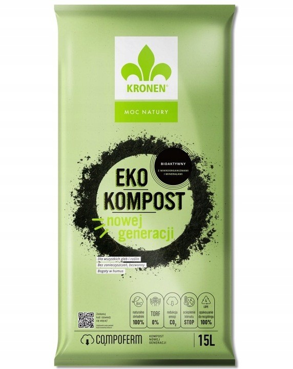 EKO-kompost KRONEN CO₂MPOFERM to bioaktywny kompost nowej generacji z mikroorganizmami i minerałami produkowany w procesie fermentacji beztlenowej zgodnie z patentem wybitnych producentów roślin.