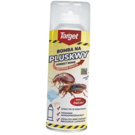 4Insect Bomba na pluskwy to gotowy do użycia aerozolowy preparat owadobójczy, skutecznie zwalczający zarówno owady biegające, jak i latające. Działa na pluskwy, prusaki, karaluchy, pchły, rybiki cukrowe, komary, meszki, muchy oraz inne owady o podobnej wielkości i sposobie żerowania. Pierwsze efekty są widoczne już po 15 minutach od zastosowania w przypadku owadów latających i po 30 minutach dla owadów biegających. Skuteczność produktu utrzymuje się przez minimum 24 godziny. Pojemność 400 ml wystarcza na zabezpieczenie powierzchni do 240 m².