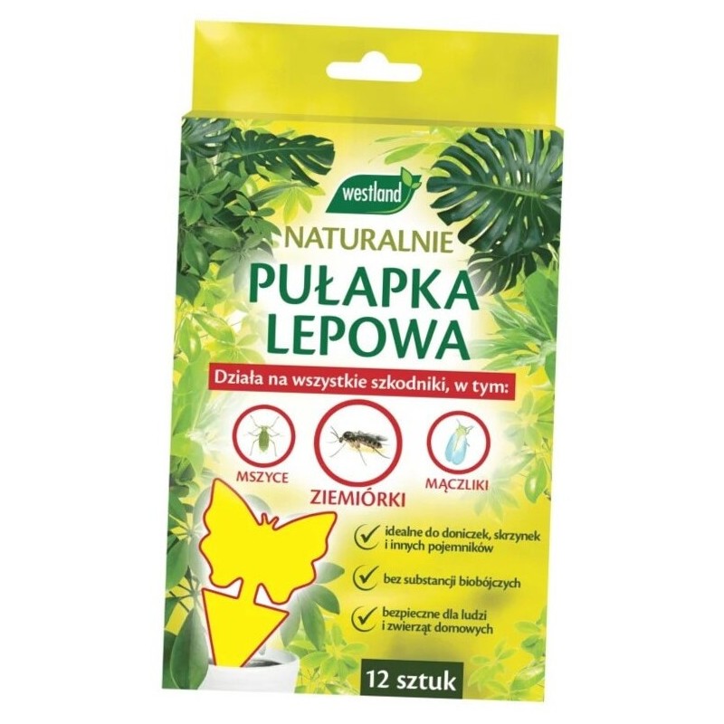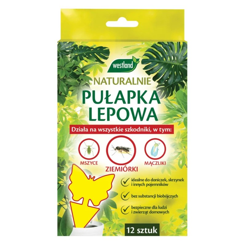 Dwustronna pułapka lepowa w kształcie motylka przeznaczona do monitorowania liczebności oraz odławiania szkodliwych owadów latających w domu i pod osłonami. Żółty kolor przyciąga szkodniki, takie jak: ziemiórki, mączliki, mszyce i wciornastki. Pułapka pomaga ograniczyć liczebność larw żerujących w podłożu, eliminując dorosłe owady i zapobiegając ich dalszemu rozmnażaniu.